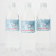 Etiqueta personalizada de botellas de agua con la imagen de un venado majestuoso en invierno. Un fondo azul y helado filtrado le da a esta foto un aspecto frío de invierno con un toque mágico. Este orgulloso y noble animal se alza sobre una colina con pinos de invierno a lo lejos. Saludos de temporada escritos en rojo con una letra negrita. El fondo es un patrón festivo de copos de nieve.