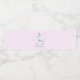 Magical tema de unicornio etiqueta de botella de agua para bebés con ilustracion de un bebé unicornio con falso cuerno de oro y pelo color arcoiris. Color del tema morado y rosa.