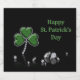 Ilustracion elegante St. Patrick's Day con un shamrock y diamantes de fondo negro.