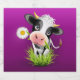 Etiqueta Para Botella De Cerveza Cute vaca Holstein en el pasto sobre morado