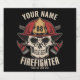Diseño personalizado del Departamento de Bomberos de Quirero del Cráneo de Bomberos - Skeleton con casco rojo y doble hacha. Personalizar con su nombre, número de estación/departamento y ubicación.