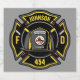 Diseño del Departamento de Bomberos - Emblema con casco y hacha. Personalizar con su nombre, número de estación/departamento y ubicación.