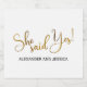 A modern gold script text with She Said Yes in a minimalistic style with your custom names below in a simple modern font.