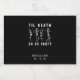 Gracioso esqueleto bailarín soltero / soltera fiesta de licor etiquetas con el texto "hasta la muerte, haznos fiestas".