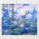 Etiqueta de licor de nenúfares rosa de Monet con hermosos nenúfares de agua rosada flotando en un estanque azul tranquilo con colchonetas de lirios. Un gran regalo de Monet para los amantes del impresionismo y del arte francés. Impresionismo natural sereno con flores y paisajes pintorescos de estanques.