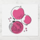 Etiqueta gráfica minimalista de estilo contemporáneo con acentos de color rosa.