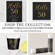 Elegante diseño negro y dorado de fiesta de cumpleaños número 50. Este moderno diseño de tipografía está en negro y oro clásico. Tiene el texto "Hola 50" en tipografía de tendencia. Este elegante diseño es perfecto para una moda y una inolvidable celebración de fiestas de 50 años, y es ideal para el fiesta, para los favores de la fiesta o como regalo de cumpleaños. Para obtener ayuda con la personalización, encontrar productos coincidentes o un correo electrónico de diseño personalizado: ursuladawnmoon@gmail.com