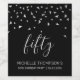 Celebra su 50 cumpleaños con estilo con este diseño simple pero elegante, con falsos confeti triangular de plata que se mueven sobre la palabra "cincuenta" con letra de escritura a mano gris claro en un fondo negro. Personalízalo con el nombre del invitado de honor en fuente sans serif gris claro, junto con la ocasión y fecha abajo en un tipo gris claro más pequeño.