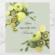 Arte acuático fresco y verde con manzanas verdes, limes y kiwis en un adorable acuerdo con nombres enmarcados y fecha boda para favores matrimoniales o aniversario. Con un fondo de personalizable y color de insignia, personaliza cambiando los nombres y la fecha.