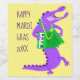 Estas etiquetas de vino harán que su celebración del Mardi Gras sea más jazz. Un lagarto morado está tocando un acordeón verde y llevando cuentas de oro. El texto dice Mardi Gras 20XX, para que puedas actualizar el año, o cambiar el texto por completo.