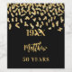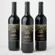 Una etiqueta de vino para una fiesta de cumpleaños número 50 (o de cualquier edad). Un fondo negro con un falso confeti de oro. Personalice y añada año de nacimiento, nombre y edad. El nombre está escrito con un guión elegante de estilo con letras a mano.