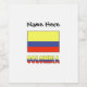 El diseño presenta la bandera colombiana con la palabra COLOMBIA abajo, en los colores de la bandera con un borde negro. Arriba es un lugar para tu nombre, así que puedes añadir un toque personalizado o crear un regalo personalizado para alguien especial.