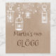 Etiqueta favorita rústica con farolillos blancos dibujados a mano con nieve en un fondo de papel de kraft marrón. Etiqueta Favor para el vino hecho a mano, jul glögg sueco, vino a la parrilla o gluhwine.
