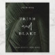 Moody Tropics, etiqueta del frasco boda. Fondo fotográfico oscuro de frondas tropicales de palma con tipografía en blanco oscuro.