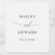 Elegante etiqueta mínima de botella de vino boda. El nombre de la pareja se puede imprimir junto con una fecha en la parte delantera. La palabra "y" está escrita en una fuente de escritura moderna.