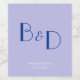 El diseño presenta un moderno monograma azul brillante con un fondo liso de color lavanda.