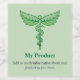 Una sola serpiente caduceus con hojas de menta. Color de fondo personalizado. Dos campos de texto personalizado.
