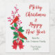 Los cardenales rojos brillantes se colocan en una estribilla en el lado izquierdo de esta etiqueta de bonito. El hueco está cargado de bayas rojas y atado en la parte inferior con un arco rojo. A la izquierda hay un guión rojo que dice "Feliz Navidad y Feliz Año Nuevo". Debajo hay campos de texto adicionales en verde para que el personalizar pueda hacerlo; de hecho, todo el texto se puede personalizar fácilmente, incluido el saludo. ¡Festividad y alegría! Asegúrese de ver los productos que coinciden en nuestra tienda.