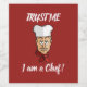 Cabeza del chef con gorra, pañuelo rojo y texto personalizado.
