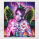 Este es un ilustracion pop colorido, trippy, surrealista de un chica en la playa, tomando un cóctel o un cóctel. Disfruta de las vibraciones calientes del verano.