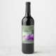 Etiqueta Para Botella De Vino Colibrí con dahlias moradas