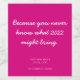 La gracia rosa de Fuchsia no sabe qué puede traer el 2022 la etiqueta de vino personalizada. ¡Todo el texto y los colores se pueden cambiar! ¡Dale este regalo para el año nuevo porque nunca sabes lo que puede traer el 2022! Un regalo divertido de Año Nuevo para amigos, colegas, profesores, padres o clientes.
