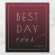This elegant wine label features a sophisticated design with a deep burgundy gradient background, creating a sense of depth and luxury. The layout is clean and balanced, highlighting the phrase "BEST DAY ever" in bold uppercase letters paired with an elegant script font for a touch of whimsy. The minimalist style focuses on typography, making it perfect for personalization or commemorating special occasions like weddings or anniversaries. Its modern aesthetic conveys celebration and anticipation, ideal for marking memorable moments with a bottle of wine.