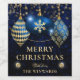 Etiqueta Para Botella De Vino Elegante Royal Blue & Gold Baubles Feliz Navidad