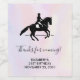 Etiquetas de botellas de vino con un ilustracion blanco y negro de un jinete. El caballo y el jinete están tocando una pirueta. Elegante y hermoso. Colocado en un fondo acuático de colores pastel delicados y mullidos.