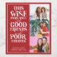 Etiqueta de personalizable divertida y moderna para celebrar la amistad con tus amigos en cumpleaños, duchas de novias, Navidades, fiestas de graduación o cualquier otro evento especial. Esta etiqueta de vino incluye la frase "Este vino se combina bien con buenos amigos y malas opciones" en fuentes de tendencia blanca y se puede personalizar con 3 de sus fotos favoritas y sus nombres.
