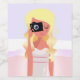 Fotógrafo chica rubio, etiqueta de vino. Edición de negocios pintada a mano.