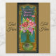 Anuncio de perfume francés vintage con un jarrón de rosas y otras flores. Dice "Agua higiénica, ramo de oriente" y está enmarcada por un marco de desplazamiento de bonito. Hecho en colores dorados, verdes, rosas, turquesas, azules y negros.Personalice si lo desea. Ofrezco la bolsa de vino correspondiente.