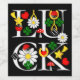 Sello de vinos multiocasión con la palabra SUERTE y los símbolos encantadores afortunados de estrellas fugaces, dados, ladybugs, tréboles afortunados, setas, maricas y corazones.