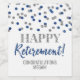 Etiqueta personalizada de botella de vino para feliz jubilación con confeti de purpurina azul y plateado