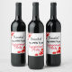 Flores rojas ilustradas con texto que dice: "Gracias por venir a nuestra fiesta de compromiso" ¡Sirva a tus amigos y familia una botella personal de su bebida alcohólica favorita!
