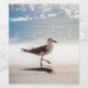 Gaviota caminando sobre la arena en Virginia Beach al amanecer