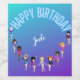 Gymnastics Amigos "Feliz cumpleaños" diseño Fiesta turquesa y gradiente púrpura personalizado con el nombre de su gimnasta!