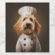 Un diseño encantador que destaca a un goldendoodle con un gorra del chef. Ideal para los cocineros amantes del mascota y para los cocineros informales, este diseño aporta un toque de alegría y diversión a la cocina.