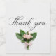 Un bellamente escrito a mano "Gracias" en negrita y fluido guión cursivo ocupa el centro de la imagen. Debajo del texto, un delicado arreglo de elegantes flores en suaves tonos pastel encuadra el mensaje, creando una composición visual atractiva y sentida.