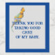 Un gesto de agradecimiento a una botella de vino es aún más significativo con esta apreciable etiqueta de vino. Este es un diseño divertido y único que presenta un gato de bloque de color que mira las palabras, "gracias por cuidar bien a mi bebé". Un cartón de azul brillante coincide con el texto de la etiqueta de esta botella. Esta etiqueta de vino puede ser personalizada para su niñera mascota que cuida tan bien a su preciado mascota mientras usted no puede estar allí.
