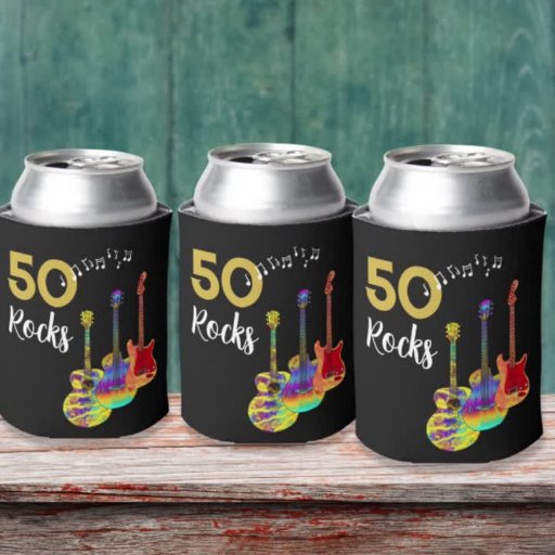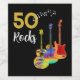 50 Rocks 50 cumpleaños fiesta de etiquetas de vino con tres diseños de guitarra acuarras sobre fondo negro. Una guitarra eléctrica con patrón de llama de fuego y protector de escotilla roja, una guitarra multicolor semiacústica y un ilustracion de arte de guitarra acústica clásico psicodélico con tipografía fresca moderna en negro y oro personalizada. Esta plantilla fácil de usar para cambiar la edad crea la perfecta decoración fiesta para celebrar los cincuenta en estilo rock and roll y es ideal para guitarristas, músicos y amantes de la música. Cualquier guitarrista te dirá que nunca puedes tener demasiadas guitarras. Este moderno diseño musical de instrumentos musicales celebra la energía musical de este maravilloso instrumento musical y es la manera perfecta de rodar una celebración de 50 años. Pintura original de la artista Catherine Sweetman
