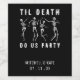 Gracioso esqueleto bailarín soltero / despedida de soltera con etiquetas de botellas con el texto "hasta la muerte hágannos fiesta".