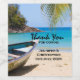 etiquetas con botellas bodas con una idílica escena tropical en la playa. Agua azul turquesa cristalina y una playa de arena fina de color marrón. Algunas hojas de palmera cuelgan desde arriba. En la playa hay una vieja barca de madera. Un paisaje tranquilo y sereno.