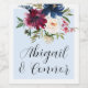 Elementos: un fascinante ramo acompañado de una tipografía elegantemente hecha que presenta los detalles de su día especial. Sus nombres son delicadamente rastreados en cursiva ornamentada con acentos sueros extraños. Colores: azul claro, azul pólvora, azul bebé, marina, borgoña, morera. Temas: jardín encantado, jardín secreto, botánico, todo el año, capricho, romántico, cuento de hadas. Colección: Boda de la Marina Azul de la Luz de los Jardínes Encantados Tipo de producto: Etiqueta de vino