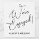 Este elegante tipo de letra de guión presenta el texto We are Engaged! para un aspecto moderno y sofisticado de la decoración de su fiesta de compromiso.