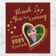 Crear etiquetas únicas de vino Marrón rojo Gracias para los favores de la fiesta de graduación con un diseño elegante que incluye una foto en forma de corazón, el nombre del graduado y el año. Utilice la plantilla para escribir el nombre y año de su Grad y cargar una imagen.