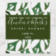 Pegatina de vino con ducha de novia con hoja de Monstera
