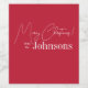 Este es un diseño navideño moderno. Está en rojo y blanco festivo y tiene el mensaje "¡Feliz Navidad! de los Johnsons". Ideal para su fiesta o celebración en esta temporada festiva, y perfecto para regalos y fiestas. Para personalizar, simplemente agregue su nombre en el cuadro de texto personalizar. Aquí también puede cambiar el resto del texto si lo desea. Compruebe la herramienta de edición de diseño para cambiar el color o el tipo de letra. Feliz Navidad! Si necesita ayuda con la personalización, productos coincidentes o para un diseño personalizado, póngase en contacto conmigo a través de zazzle chat o correo electrónico: ursuladawnmoon@gmail.com