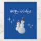 Etiqueta de vino Happy Holidays, con un alegre diseño de snowmen acentuado con simples copos de nieve blancos. Sobre un fondo azul, se puede personalizar con letras blancas. Ideal para entretenerse con su fiesta Navidad.