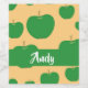 Agregue su nombre en estas manzanas verdes en el diseño de patrón de fondo naranja.